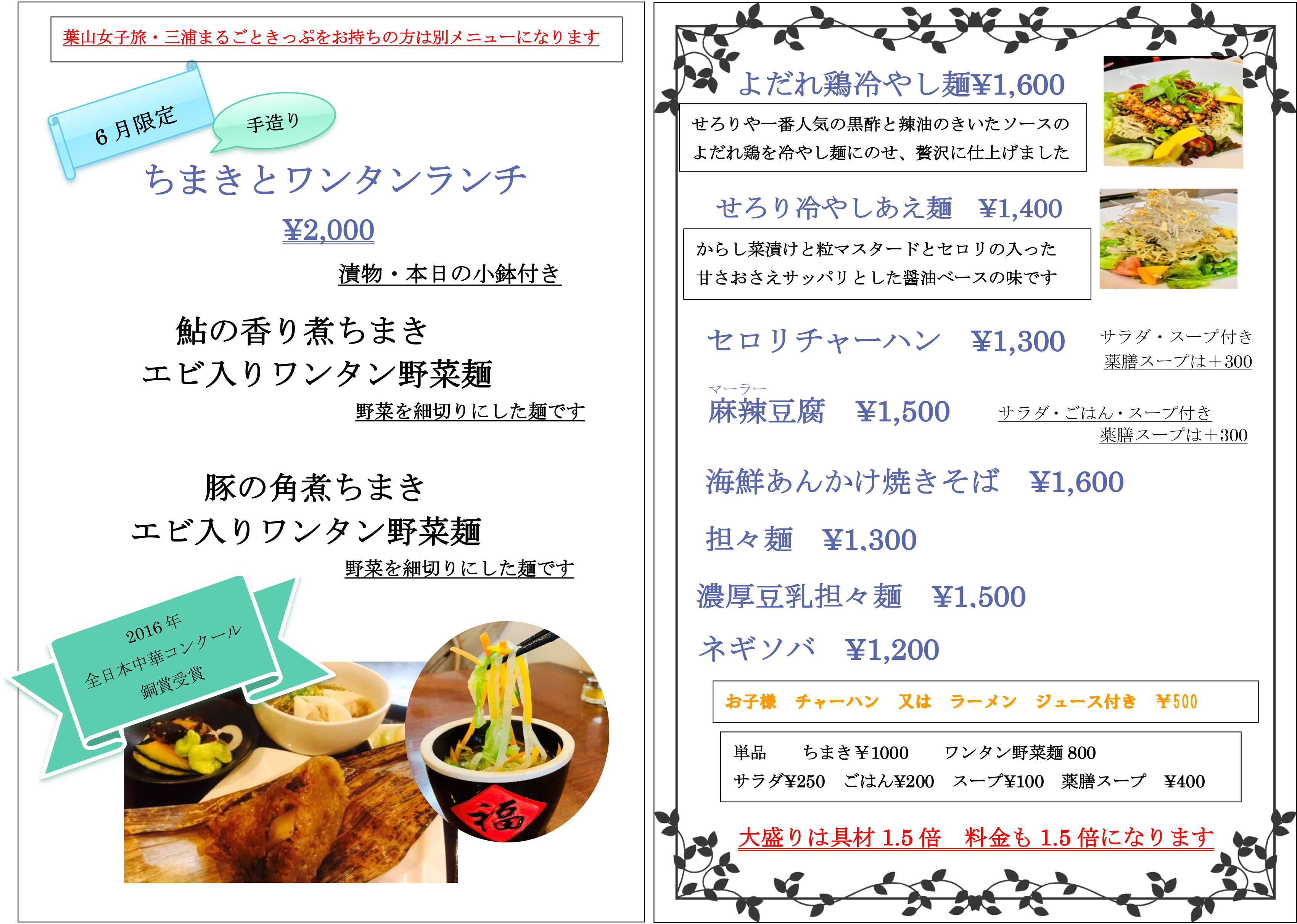そんな6月のランチは「ちまきとワンタンランチ」です。