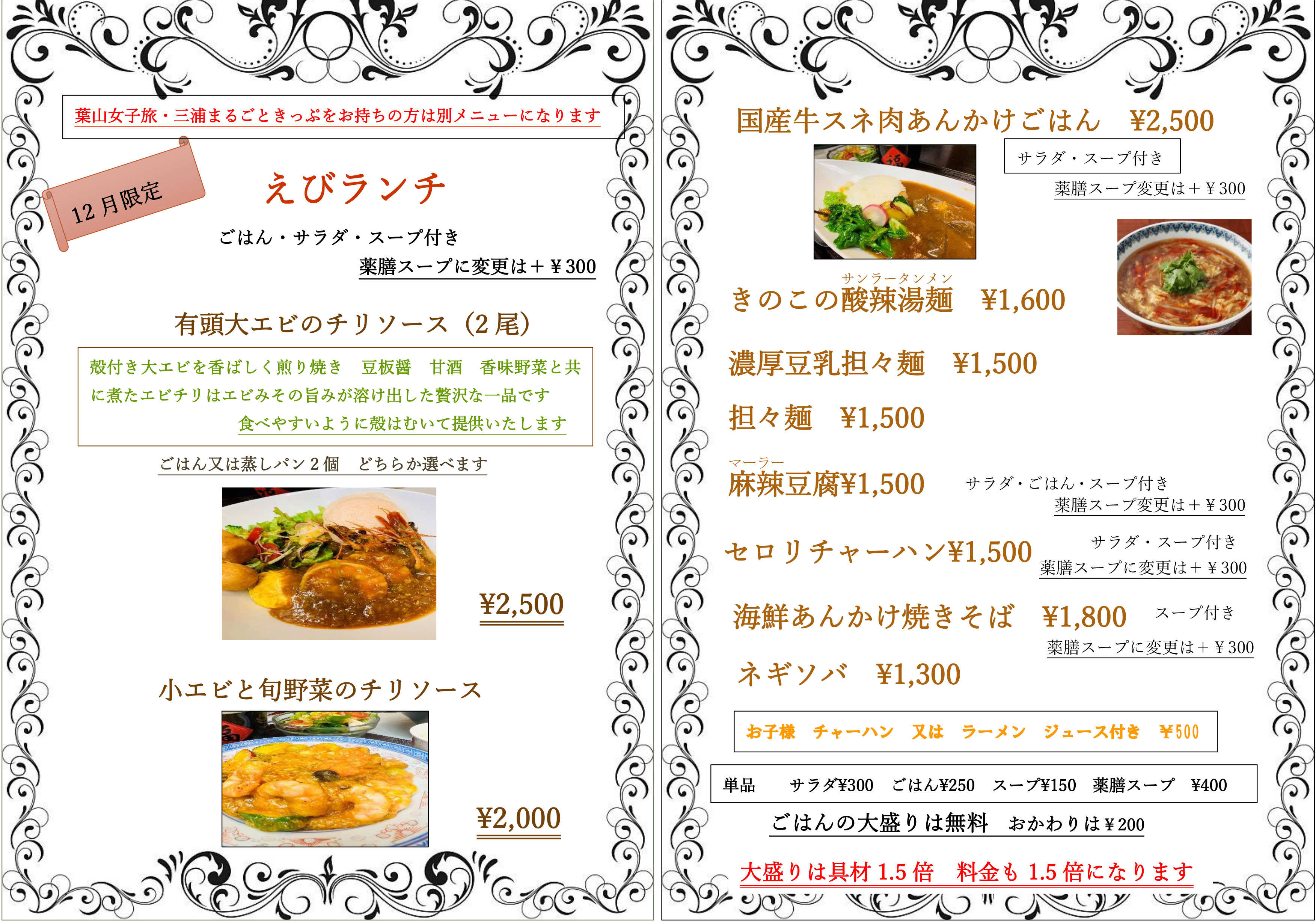 そんなせろりやの12月のランチは「有頭大エビのチリソースプレート(2尾)」になっております。